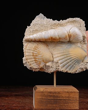 Equinoide fósil en matriz original - Esqueleto fósil - Placa de mortalidad fósil - Asterocidaris Bistriata - Artisan Base in Wood and Wrought Iron - 253 mm - 97 mm