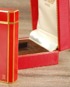 Cartier - Pentagon Gas Lighter - Taskusytytin - Kultapinnoitettu (Plaqué Or G) punaisella lakkauksella.