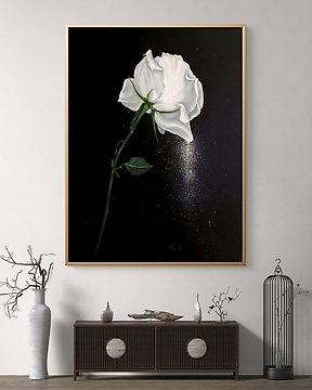 Rosalí | Botanical Fine Art - “White Rose and Falling Time Dust – Rosalí Collection” | Botanical Fine Art