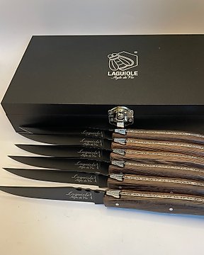 Laguiole - Style de Vie - Pöytäveitsisetti - Upeat wengépuiset pihvimessit aitoustodistuksella - ruostumaton musta teräs.