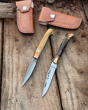 K Romain - Keittiöveitsi - Kitchen knife set - Legendaarinen kokoelma boutique-valmistettuja Laguiole Bougna Italian Pattada -veitsiä, jotka on - Teräs, Ruostumaton teräs, nahka, luu - Ranska - Ajaton harvinainen löytö