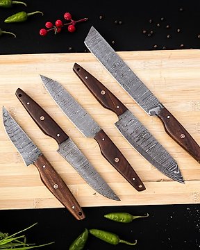 Keittiöveitsi - Kokkiateriaksetti, tarkoitus päivittäiseen käyttöön sisällä ja ulkona (FK-148) - Amerikkalainen ruusupuu kahva ja taitettu teräs. - Yhdysvallat - Keittiö- ja grillaussetti