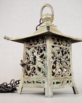 Iron Japanese Hanging Lantern 吊り灯篭 - Riippuva lamppu - Vetävä roikkuva lyhty, jossa on lohikäärmeiden ristikkokuvio Meiji-ajalta (1868–1912). - Rauta
