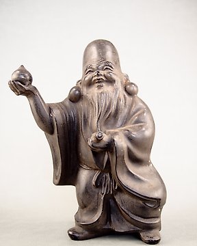 Pronssi - Tokumitsu 徳光 - Jurojin figuriini, yksi Seitsemästä onnenjumalasta. - Meiji period (1868-1912)