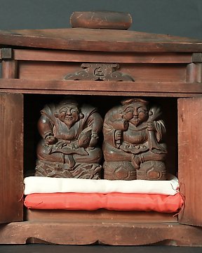 Kamidana Shrine with Daikokuten and Ebisu – Commemorative Piece for the Enthronement of the Taisho - Veistos Puu - Japani