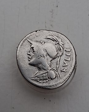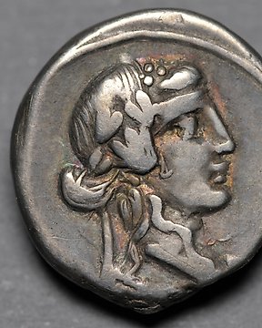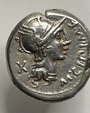 Rooman tasavalta. Appius Claudius Pulcher, Titus Mallius (tai Maloleius) ja Q. Urbinius, 111/110 eaa.. Denarius Rome
