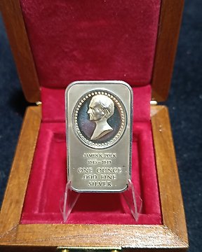 Ilmainen kuljetusYhdysvallat. Estuche Deluxe-Lingote James K. Polk ( Madison Mint) Silver Bar .999 (31,10Gr) (Ei pohjahintaa)