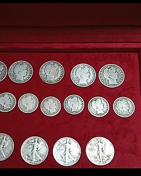 Ilmainen kuljetusYhdysvallat. Estuche Deluxe 16 Coins Silver 1/2 -1/4 Half Dollar Barber& 1/2 Half Dollar "Walking Liberty