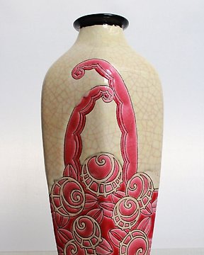 Keramis, Keramis Boch, Boch Frères - Charles Catteau - Maljakko - Ovoidinen maljakko tasaisella suulla, 30 cm!! - Creamware-posliini / kermanvärinen posliini - Florale Stylisée