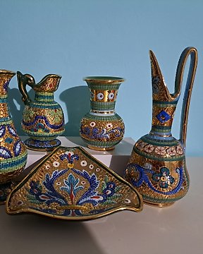 Augarten - Augarten Wien - Pöytäkoriste (8) - 7 kynttilänjalkaa ja 1 kulho - Posliini - Käsinmaalattu