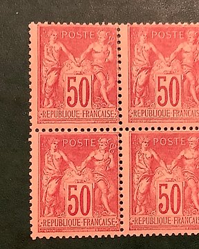 Ranska 1853 - Cote 1700 €, harvinainen neljän merkin lohko, jossa on isoja neliön muotoisia postimerkin leimauksia - Yvert n°16