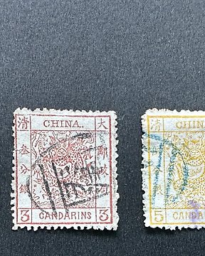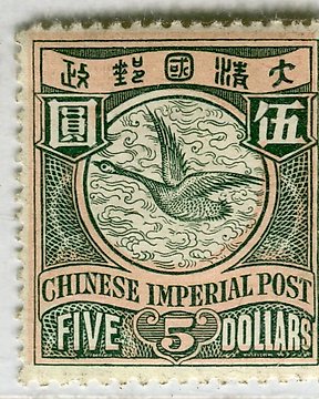 Kiina 1944 - Erä 16 sentin oliivinvärisiä postimerkkejä, joihin on painettu punaisia tai mustia kiinalaisia