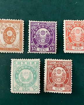 Japani 1949/1955 - Otto harvinaisia lehtiä Parchi-korteista, ensimmäiset kaksi kynällä merkityllä, mutta - Michel n. bf 25+27+3/35+38+40+42