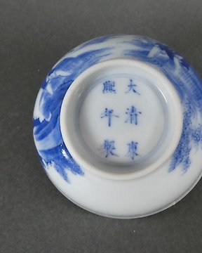 Qing (1644-1911) - Kangxi Six Character Mark - Kulho - Three Fishermen Catching a Fish - Da Qing Kang Xi Nian Zhi - Posliini - Ultra Fine Quality