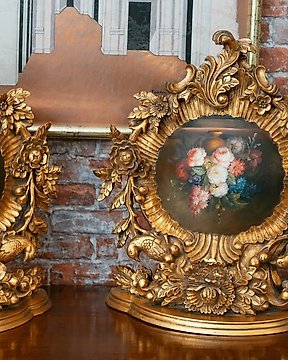 Coppia di Antichi Specchi con Portacandele in Vetro di Murano / Applique - Seinälampetti (2) - Puu, kultalehti, Murano-lasi ja peili - Specchi / Applique