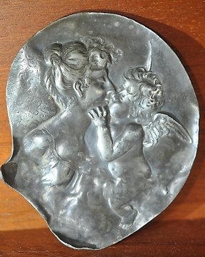 Orfevrerie Dilecta - Mustepullo - Encrier Double avec Boîte à Plumes Modèle Dépose Numéroté 932 et Presse Papier - Hopeanhohtoinen patina - lasi