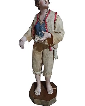 scuola Napoletana presepiale - maestro napoletano - Patsas, Pastore della MERAVIGLIA - 35 cm - Kivitavara, Kristalli, Pysäytä, Silkki