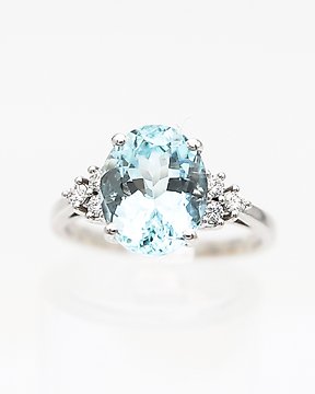 Sormus - 18 kt. Valkokulta Timantti (Luonnollinen) - Akvamariini