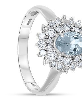 Sormus - 18 kt. Valkokulta - 1.19ct. tw. Akvamariini - Timantti