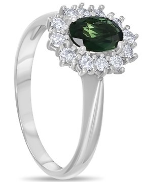 Sormus - 18 kt. Valkokulta Turmaliini - Timantti