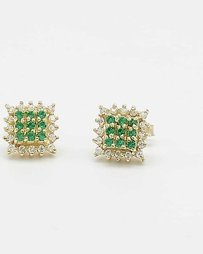 Ei pohjahintaa - Korvakorut - 14 kt. Keltakulta Smaragdi - Timantti