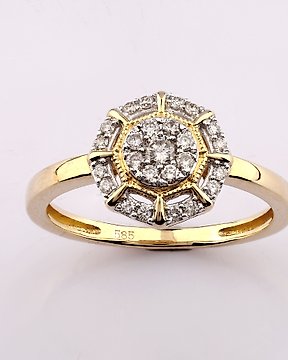 Sormus - 14 kt. Keltakulta - 0.25ct. tw. Timantti (Luonnollinen)