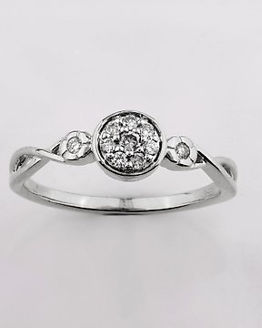 Sormus - 14 kt. Valkokulta - 0.14ct. tw. Timantti (Luonnollinen)