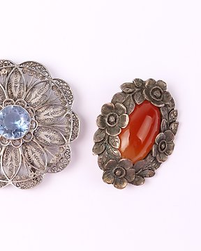 Ei pohjahintaa - Rintaneula Hopea - 2 stone vintage statement