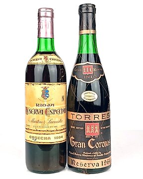 1964 Martínez Lacuesta Reserva Especial & 1964 Torres, Gran Coronas Etiqueta Negra, Reserva - Rioja, Penedes - 2 Pullot (0.7 L)