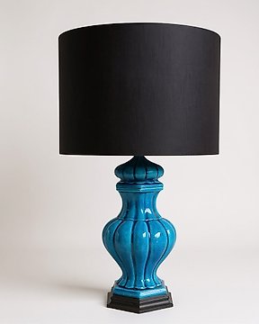 Pöytävalaisin - Pöytälamppu - Superb Blue crackle 70-luvulta - Keramiikka, Tekstiili, Puu - Riviera Spirit - Posliini