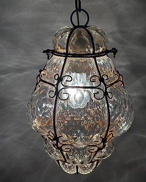 Riippuva lamppu - Lasi, Metalli - Vintage-riippuvalaisin läpinäkyvästä puhalletusta lasista, jossa on koristeellisia ilmapalloja ja