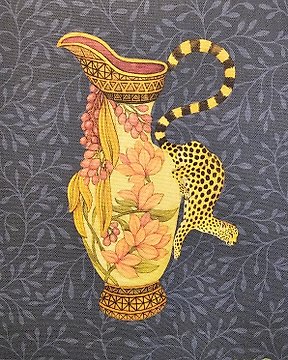 Tessuto Rajoitettu erä! XXL 'Vases Paradise' krokotiileilla ja flamingoilla - 300x280cm - - Tekstiili - 300 cm - 280 cm