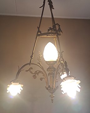 Set aus zwei Tiffany-Stil-Pendelleuchten – Bleiglas, florale Ornamentik - Kattovalaisin - Lasimaalaus