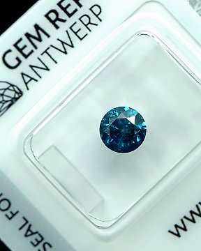 1 pcs Timantti (Värikäsitelty) - 0.32 ct - Pyöreä - Fancy deep Vihertävä Sininen - SI2 - Jalokivitodistus, Antwerpen (GRA)