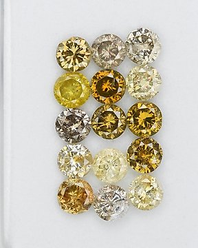 Ei pohjahintaa - 15 pcs Timantti (Värikäsitelty) - 1.08 ct - Pyöreä - Fancy deep, Very light Kellertävä, Vaaleanpunertava, Harmahtava, Rusehtava, Vihertävä Ruskea, Keltainen, Vaaleanpunainen, Oranssi, Harmaa, Vihreä - I3, VS1 - Antwerpenin jalokivitestauksen laboratorio (ALGT)