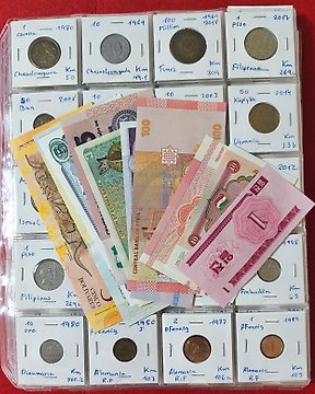 Maailman erä: 140 kolikkoa 44 maasta, plus 12 setelitä, UNC-laatua. Aika 1900-2000.. (Ei pohjahintaa)