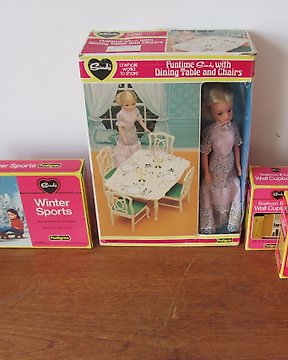 Pedigree - Lelu Sindy Dining table and chairs-winter sports-wall cupboard 3x - 1970-1980 - Iso-Britannia