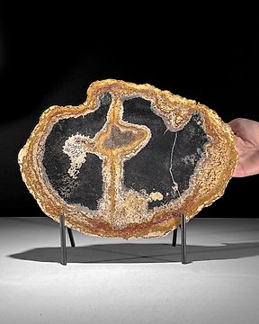 Upea petrifioituneen puun viipale räätälöidyllä jalustalla. - Kivettynyt puu - 23.6 cm - 22.5 cm (Ei pohjahintaa)