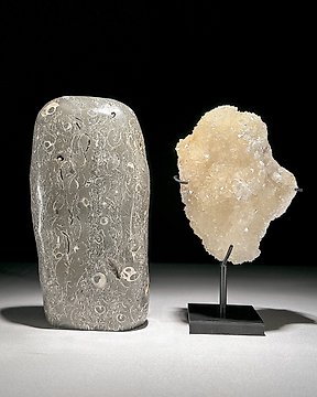 Koriste-esine (2) - NO RESERVE PRICE - Wonderful Pair of Turritella Freeform & Calcite Crystal Cluster on stands - Yhdysvallat