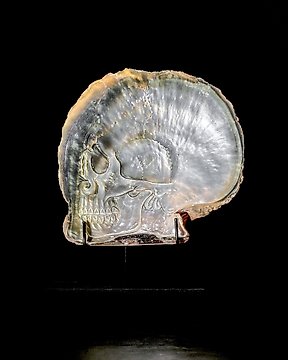Kaiverrus, NO RESERVE PRICE - Intricately Carved Mother of Pearl Shell - Human Skull Motif - 16 cm - Kuori - 2025