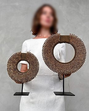 Koriste-esine (2) - NO RESERVE PRICE - A Pair of Caramel Colored Tolai Necklaces on custom stands - Papua-Uusi-Guinea