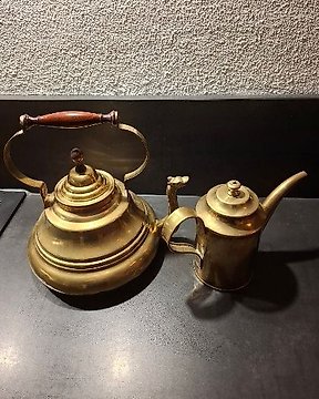 Kahvipannu (2) - Fraaie vintage koperen koffiekan en waterketel - Kupari