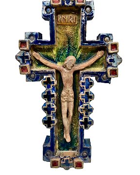 Vintage Krusifiksi - Kivitavara, emaloitu - 1970-1980 - Artistico Pezzo Unico - 43 cm