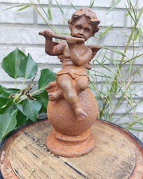 Patsas, angel op sphere musical instrument whistle - 20 cm - Metalli