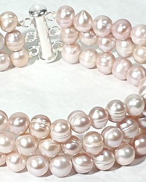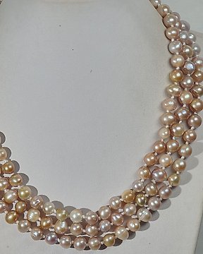 Perlas Rosas Naturales Agua Dulce - 3 kierrosta - Glorioso Estados de los Santos - hopea 925 - Rannekoru
