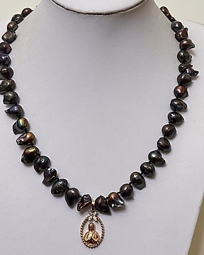 Natural Perlas Negro Barroco con Virjin Maria. Kaikkien pyhimysten suoja. - Kaulakoru riipuksella - Korkealaatuinen. Plata 925