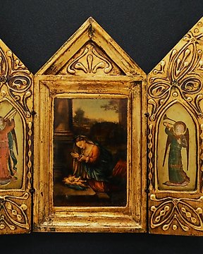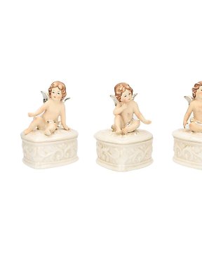 Kaiverrus, Holzfigur - 2 farbige Engel einer mit Laterne der andere mit Mandoline - Schutzengel - 22 cm - Puu