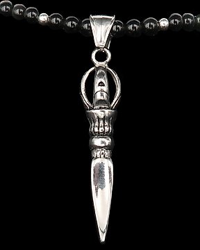 Collier Phurba tibetiläinen obsidiaanista: suojaus ja kiellon - lukko, hopea 925 helmet - Kaulakoru riipuksella
