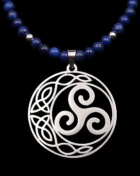 Lasuurikivi - Trisküle Druidi -kaulakoru: Kolmen maailman avain ja kelttiläinen viisaus - suljin, 925 hopeiset - Kaulakoru riipuksella