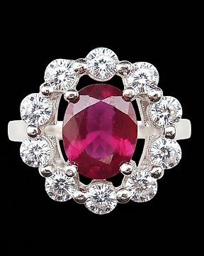 Rubiini - Hopea, Rubis-sormus 'Fleur Royale': Intohimoa ja ajattomasti eleganssia - 925 hopeaa - Sormus